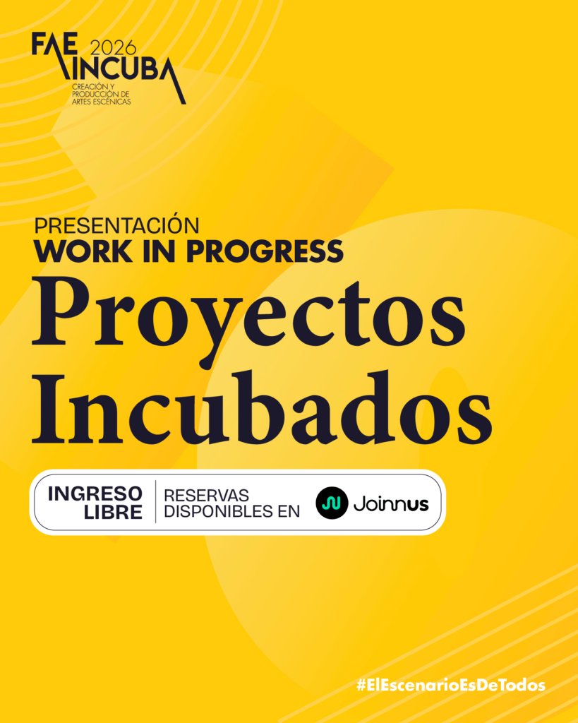 FAE Incuba es un programa de residencia para proyectos escénicos. Cada propuesta recibe acompañamiento creativo y asesoría especializada, con el respaldo de organizaciones del FAE Lima y mentores nacionales e internacionales.
